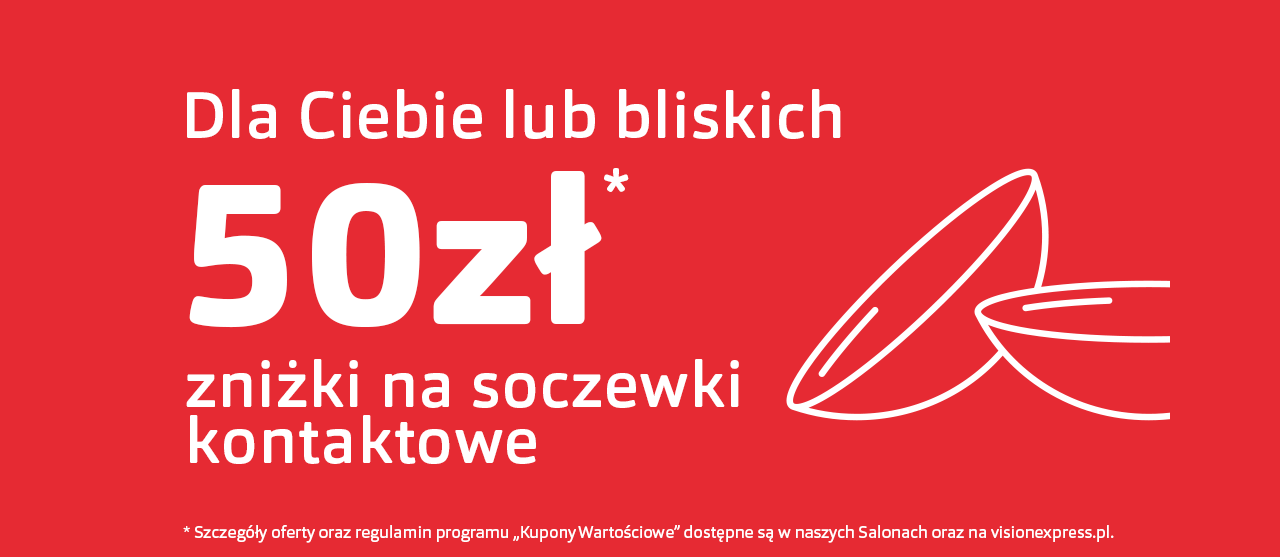 Kupując kompletną parę okularów, otrzymasz kupon, upoważniający do jednorazowej zniżki w wysokości 20% na zakup jednego, dowolnego towaru, znajdującego się w ofercie Organizatora, z wyłączeniem soczewek